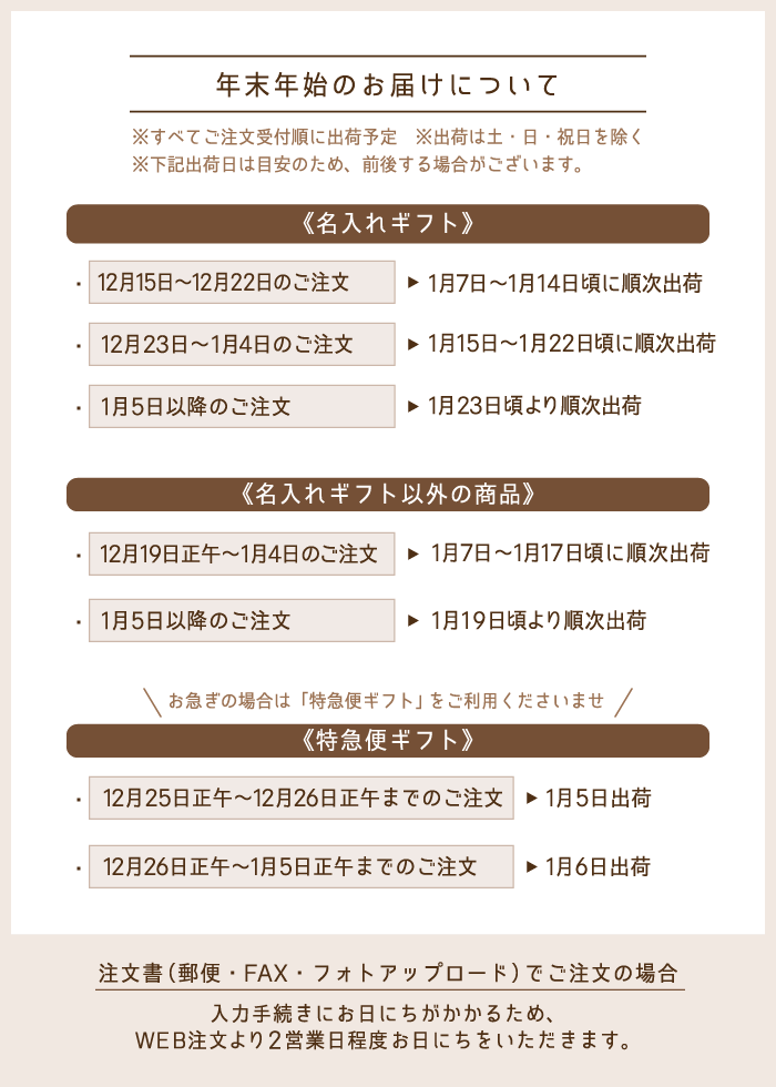 【年末年始のお届けについて(12月15日~1月9日頃のご注文)】