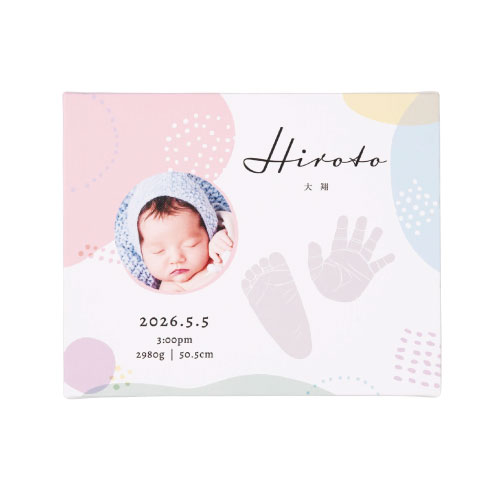 アートのような仕上がりのキャンバス。パステルカラーに包まれたお子さまのかわいさが引き立つデザインです。(手足形無し)